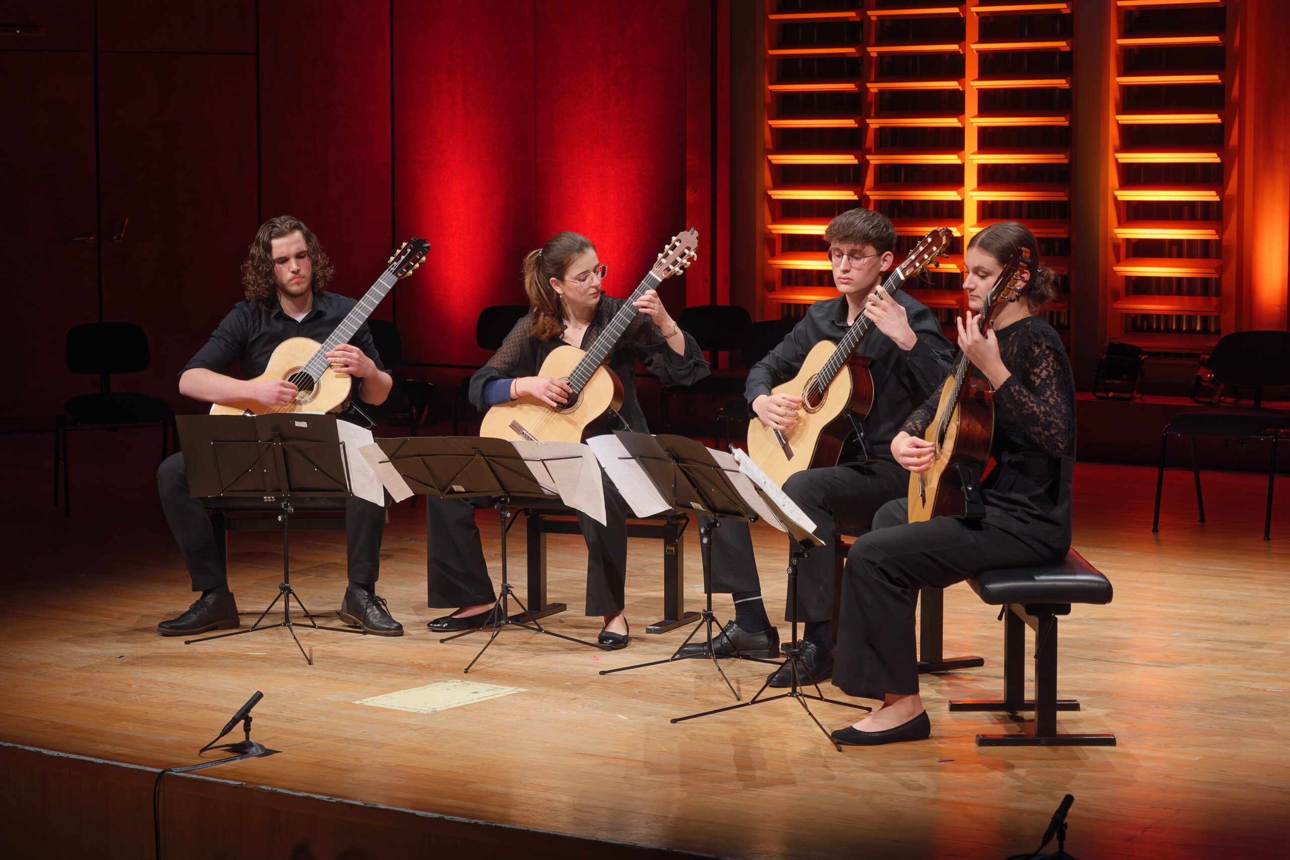 Dem Gitarren Quartett (*2022) aus Baden-Württemberg wurde beim Bundeswettbewerb in Wuppertal ein Erster Preis mit der höchstmöglichen Punktzahl zuerkannt.